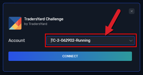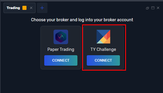 Gehe zum Trading-Tab und klicke auf „Connect to TY Challenge“.