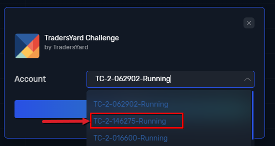 <p align="center">sie werden zum dropdown-menü „ty challenge account“ weitergeleitet. wenn sie auf das kontomenü klicken, erscheint ein dropdown, das alle ihre verfügbaren ty challenge accounts anzeigt<br><img src="https://www.gitbook.com/cdn-cgi/image/dpr=2,width=760,onerror=redirect,format=auto/https%3A%2F%2Fcontent.gitbook.com%2Fcontent%2FmoL6SnOeUi6F7Vf11se6%2Fblobs%2FMAFPB7aswZYLUaddrynP%2Fcma2.png" alt=""></p>
