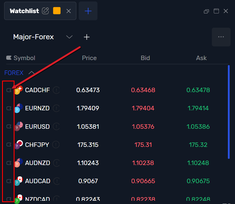 * You can explore both default and custom watchlists and click the "add to favorite" button located on the left side of the symbols.